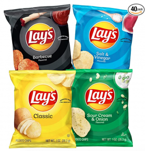 SNACK ATTACK! Score this Lay’s Potato Chip Variety Pack 40-count for only $11.38 when you checkout via Subscribe & Save! That’s only $.28 per bag! Or, you can checkout with a one-time purchase, and pay just $11.98. It includes 40 one-ounce bags of these flavors: classic, barbecue, sour cream & onion, and salt & vinegar.